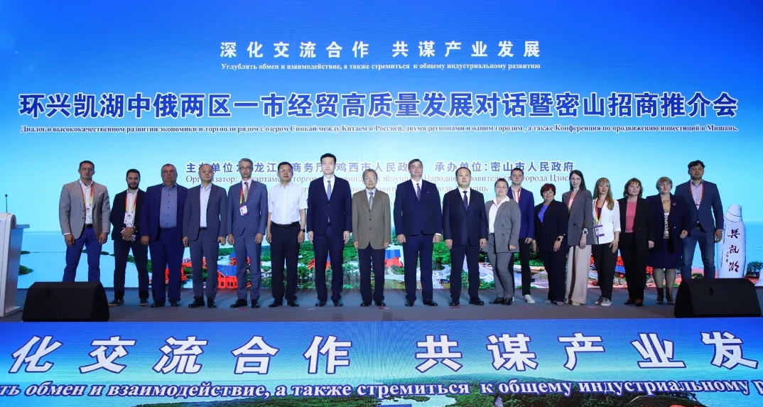 王立峰在會上與省商務(wù)廳二級巡視員姚綱,省工信廳二級巡視員王東純,雞西市政府副市長陳霖,密山市委副書記、市長王士強,俄羅斯濱海邊疆區(qū)霍洛里區(qū)區(qū)長古柏杜林,俄羅斯濱海邊疆區(qū)興凱區(qū)副區(qū)長瓦西里耶夫按下共同推動環(huán)興凱湖地區(qū)高質(zhì)量發(fā)展倡議發(fā)布儀式啟動鍵。