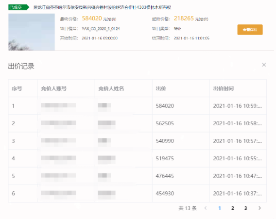 近期,齊齊哈爾市依安縣新興鎮(zhèn)興福村股份經(jīng)濟(jì)合作社4303棵林木所有權(quán)項(xiàng)目在省農(nóng)村產(chǎn)權(quán)交易平臺溢價(jià)成交。